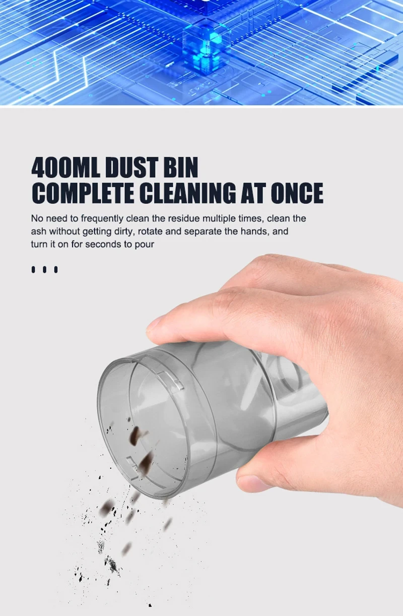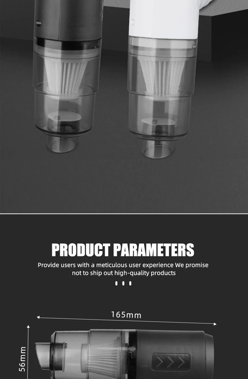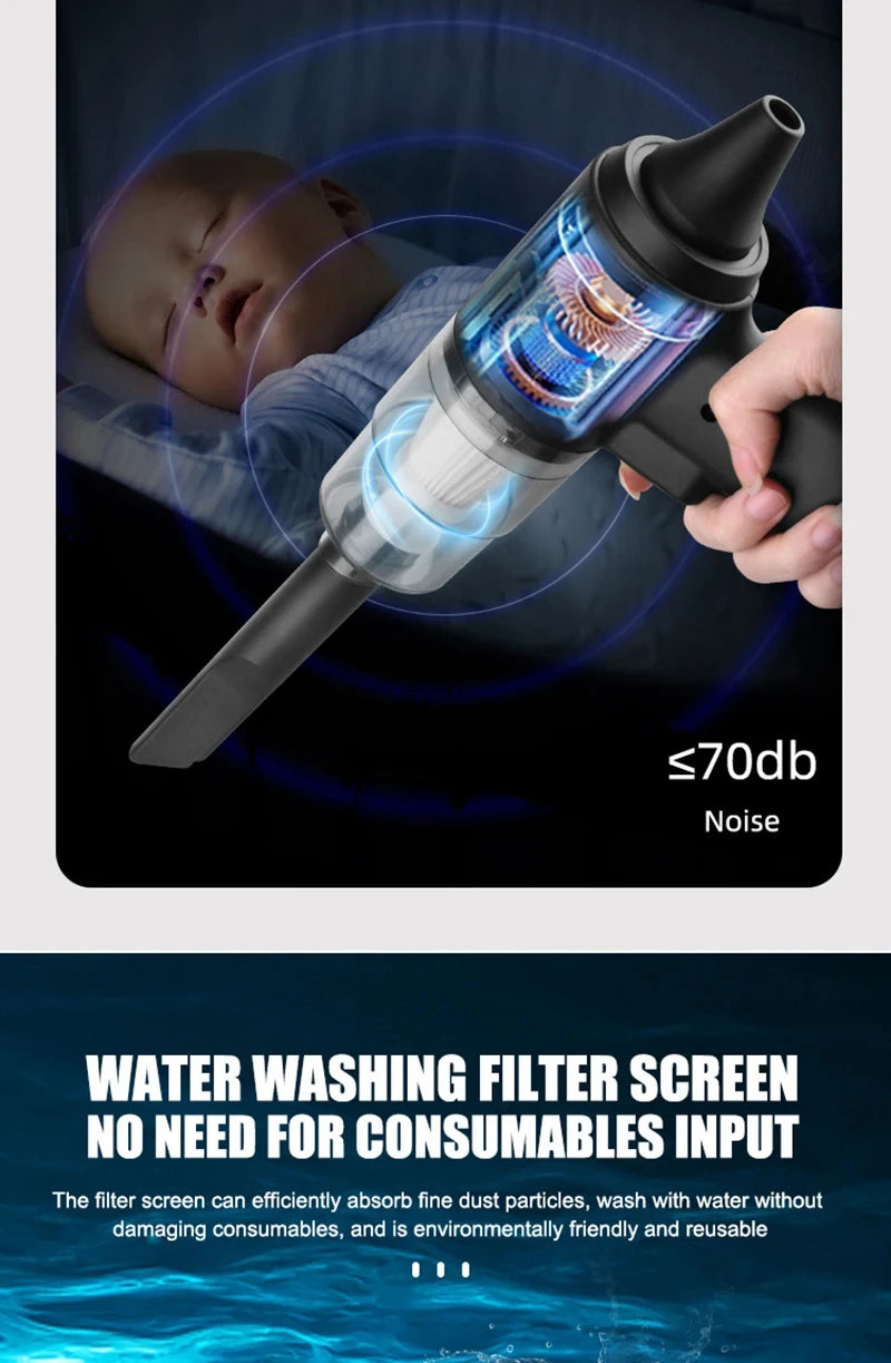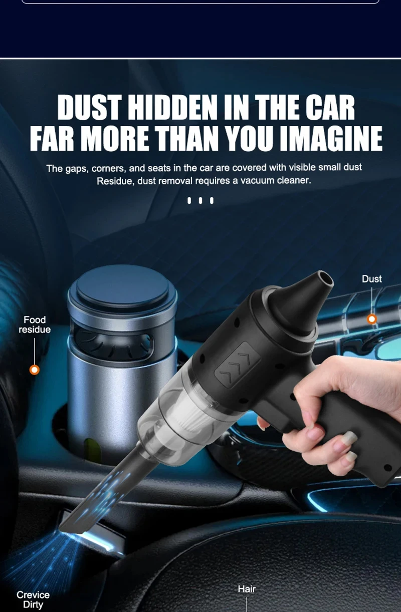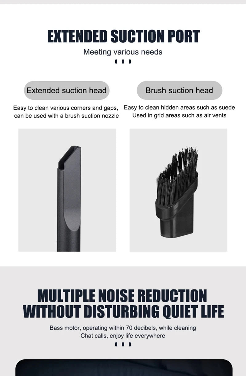 5.Aspirateur multifonctionnel : aspirateur de voiture professionnel sans fil portable, rend votre voiture et votre maison propres tous les jours. L'aspirateur à main a un corps léger et ne pèse que 0,30 kg. Il n'est pas fatigué de le tenir longtemps et convient particulièrement aux personnes âgées et aux femmes.