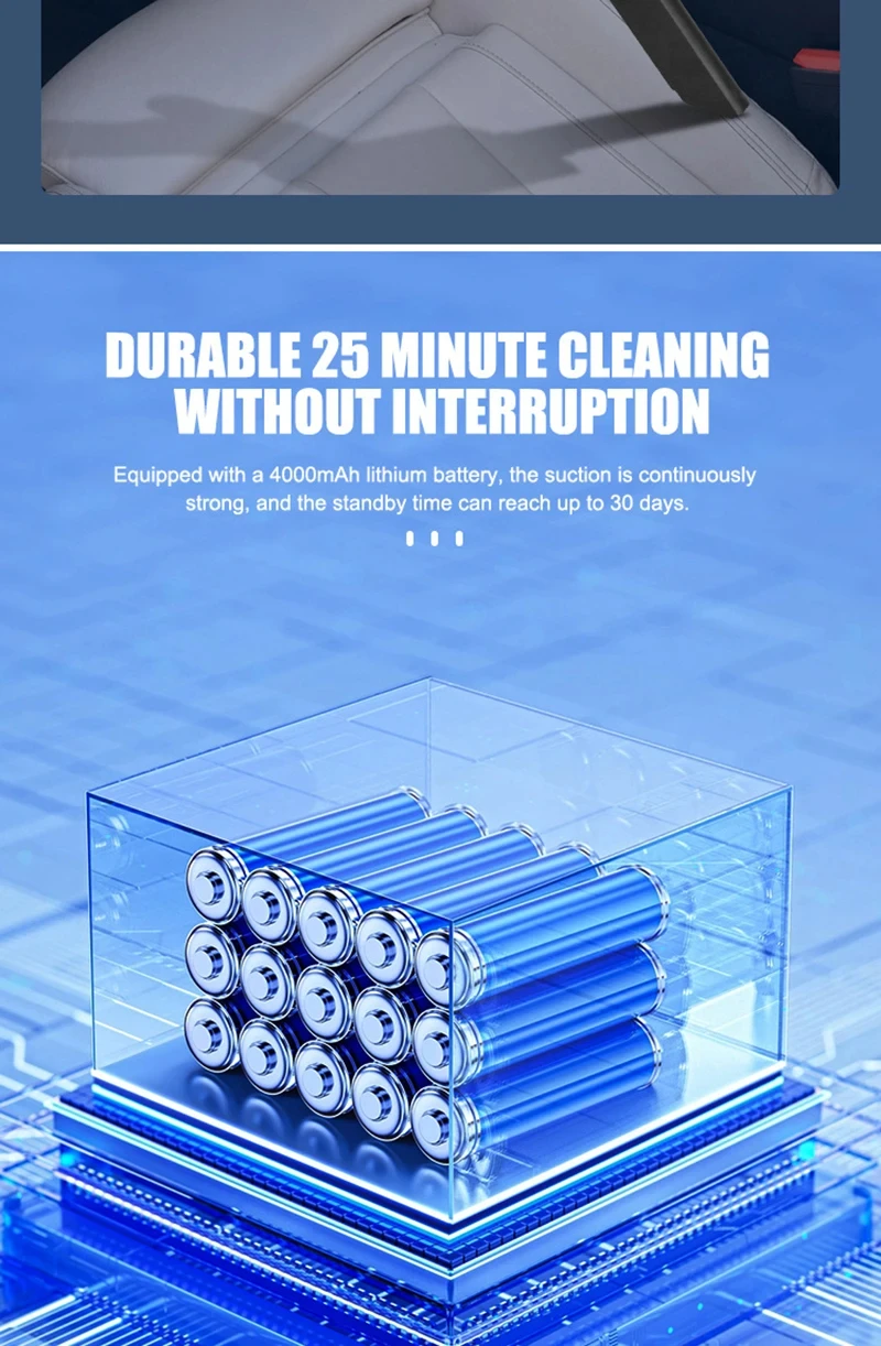 4.Forte aspiration de 5,5 KPa : l'aspirateur de voiture portable à une forte aspiration de 5,5 Kpa, adapté aux travaux ménagers quotidiens pour nettoyer la poussière.Puissance de sortie Le moteur superpuissant de 120 W fournit une forte aspiration jusqu'à 5 500 Pa, ce qui peut éliminer rapidement et facilement les résidus alimentaires, les particules et les poils d'animaux dans la maison ou dans la voiture.Le fonctionnement mobile sans fil sous vide humide/sec est plus pratique.